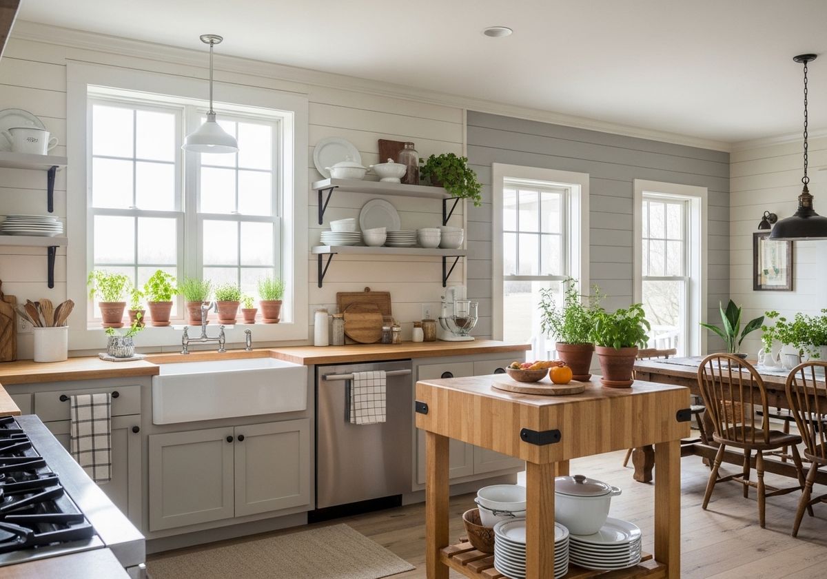 Natural Wood Elements: Think exposed beams, butcher block countertops, and shiplap walls. These elements add texture and a sense of history.